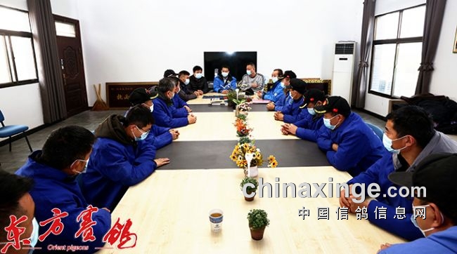 陕西省信鸽协会裁判委员会主任、国家级裁判曹树镇(左四)在集鸽会议上讲话。