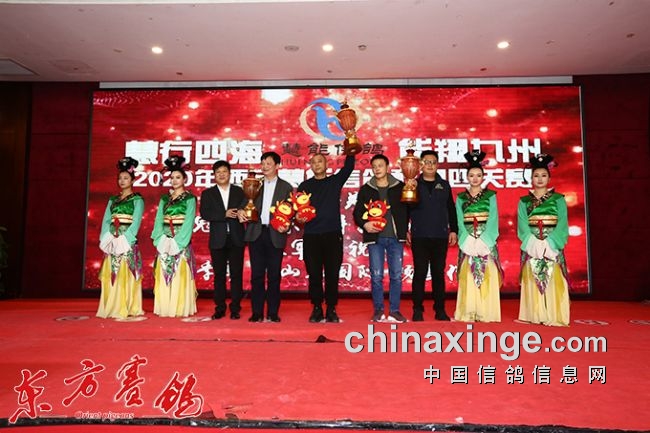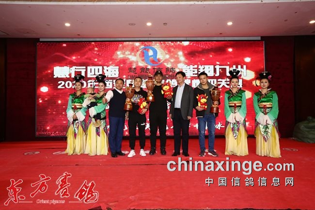 随后到会的特邀嘉宾向荣获奖鸽友颁发了奖杯。
