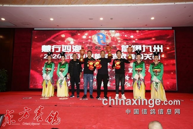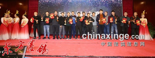 董事长霍新余、秋棚总经理王建林、俱乐部总经理宦晓彬为三关鸽王前十名颁奖。