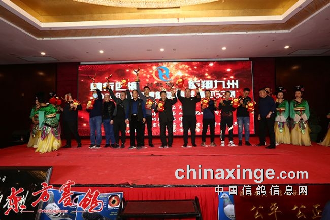 晚会到场的颁奖嘉宾:中国信鸽副会长马毅,陕西省信鸽协会副主席梁国强,国家级裁判陆建阳,中国信鸽协会国家级裁判魏景泰;江苏赛鸽高手王阿信,丰台的名将黄龙喜,建东鸽舍徐建东,金永坤、江苏大名家杨晓东、神通鸽业神克俭、南京赛鸽名家焦勇、王震宇先生;河南赛鸽名家马建中先生,戈建军、许振、上海名家曹贵,湖北赛鸽名家杨庄军、四川名家彭博君先生、尹小林先生、胡文达先生、四川红军公棚董事长王绍军、著名赛鸽家韩一鸣。山东济南名家邹毅、宋学林、王路平、彭三元;山西新时代精英公棚王钦东、陕西名家卢大伟、谭劲、谭涛、鸽王冠军、决赛冠军华信赛鸽王伟等,以及西宁贾童、鸽界著名的赛鸽名家巩同、常东海、利海集团董事长王利涛、爱丽丝鸽药技术总监王震、慧能公棚董事长霍新余、中国信鸽协会官网团队、资深媒体人胡长根老师、何建民老师、东方赛鸽传媒团队、我为鸽狂郑雷老师。