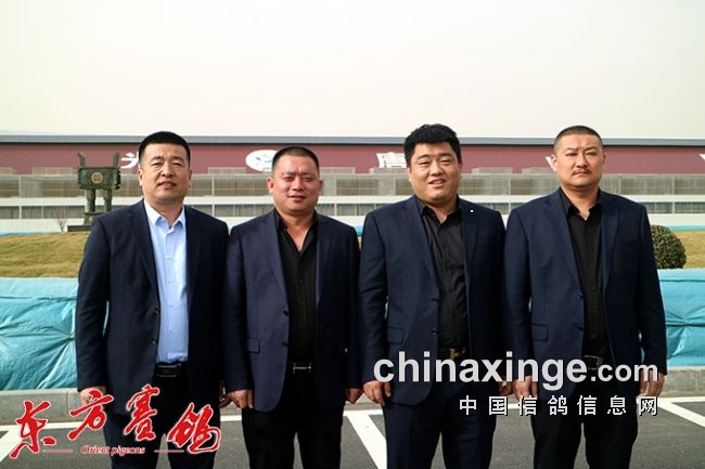 董事长王秀强(左二)鸽业总经理王振强、公棚总经理李利民欢迎嘉宾到来。