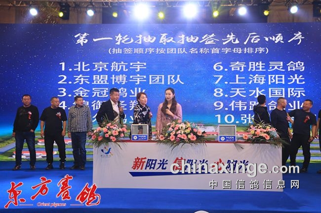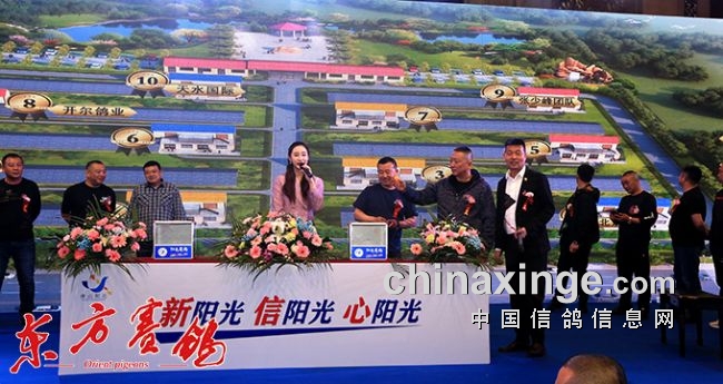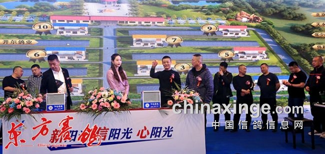 上午10时,嘉宾们返回唐山国丰维景国际大酒店,著名拍卖师马鹰、格格主持了十大团队抽签仪式。来自全国各地的鸽友、嘉宾近二百人见证本次抽签仪式。