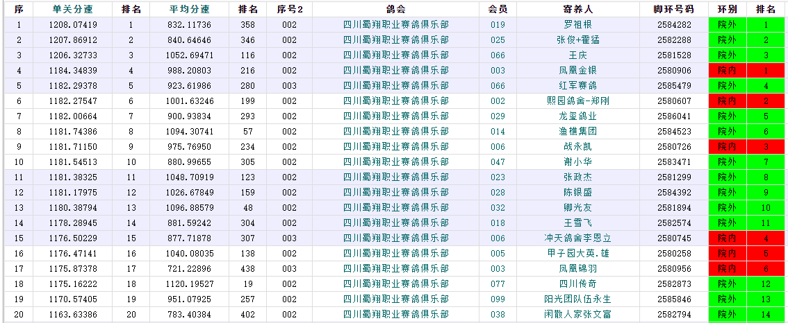 四关综合鸽王前20名报到成绩(点击图片看大图)