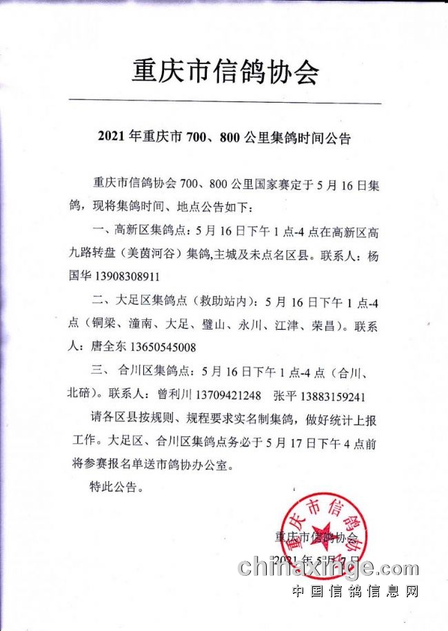 4-5月,各地国家赛如火如荼,陆续开展,重庆长距离国家赛(兰州赛区)也重磅来袭。本次重庆长距离国家赛,赛距为700公里、800公里,已于5月16日完成集鸽,具体包括高新区、大足区、合川区三个集鸽点,集鸽完成后,统一送至兰州司放,17日,放鸽车已抵达兰州。