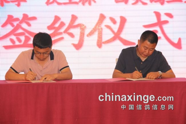 签约仪式由中国信鸽著名拍卖师李武和雨菲共同主持,他们用鸽友喜爱的风格,竖起独特的风景线。主持人首先对到场的嘉宾表示热烈的欢迎,并且逐一介绍了与会的信鸽协会领导和鸽界名流以及十七大团队领导和教练。