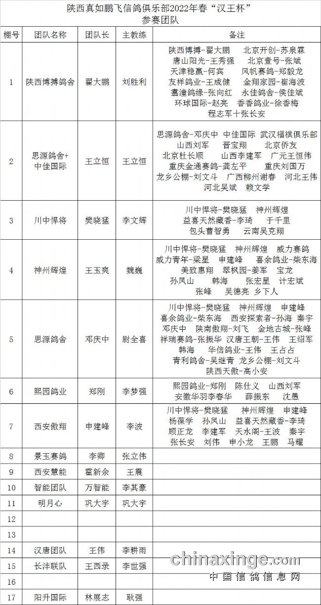 参加此次签约盛会的嘉宾有信鸽协会领导、全国各路赛鸽强豪、信鸽爱好者、鸽界精英,以及来之各地的信鸽媒体代表,中信网信鸽传媒专题报道。共同见证真如鹏飞“汉王杯”职业赛再接再厉,实现新飞跃,再创新高峰,续写新篇章。