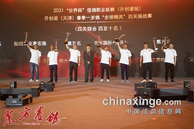 中国信鸽协会副会长黄剑为第四届开创春赛四关综合鸽王4——10名鸽友颁奖。