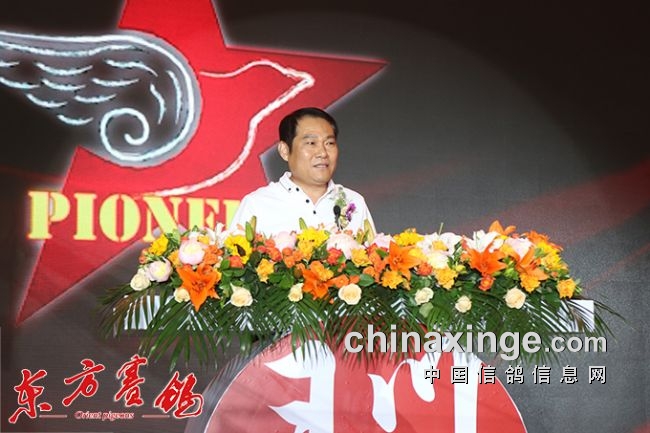“首先感谢中国信鸽协会和我们天津信鸽协会对开创者赛鸽俱乐部赛事和其他方面很大的支持,给予了很多的帮助,在此对中国信鸽协会和天津信鸽协会表示感谢。同时感谢我们静海区的领导、体育局的领导、还有我们公棚所在地的领导对我们公棚和俱乐部建设方面的支持表示感谢。还有今天到场的媒体朋友们,没有你们的支持就没有我们天津开创者这样成功的表现。开创者建立有十多年了,现在天津开创者是第四年,开创者秉承公平、公正、公开的角度为鸽友服务、办好我们比赛。相信在以后的日子里,我们继续发展我们好的东西,为我们鸽友服务,保证赛事更加公平、更加透明,为我们赛鸽鸽友提供一个更好的平台,谢谢大家。”
