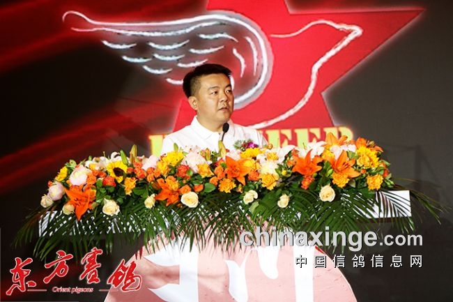 随后国际信鸽联合会顾问、中国信鸽协会副会长——黄剑代表中鸽协致辞,主题是——讲中国故事,树世界标杆(将另行文发表)。