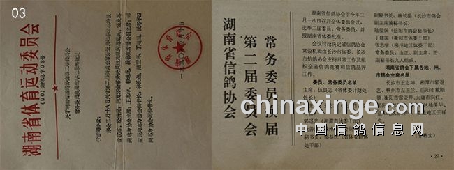 会议讨论决定省信鸽协会常设机构由长沙市体委、长沙市信鸽协会主持日常工作及组织全省信鸽竞赛和信鸽品评工作。(见下图03)