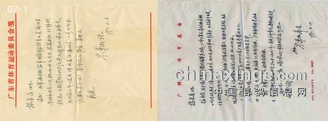 长沙市鸽协在主持省鸽协日常工作期间,和王志坤主席去上海参加中鸽协全国工作会议时,与广东省体总官员岑先生、汕头市鸽协主席陈先生闲聊,谈及时下中鸽协举的全国同赛距、不同地区、不同地里条件的全国信鸽赛、所决出来的优胜鸽统一排名颇失公允都有同感,那些处在地理条件险恶的鸽协颇有微词但却又无奈。南方地区的信鸽协会地理条件大同小异,均有意联合举办南方多省市信鸽联翔。此意向对省鸽协伍主席做了详细汇报后得到老伍头首肯,并请市鸽协专人与广东省体总联系共同商定此事。和广东省体总秘书长岑秉湘联系相关部份信件(见下图07-1)