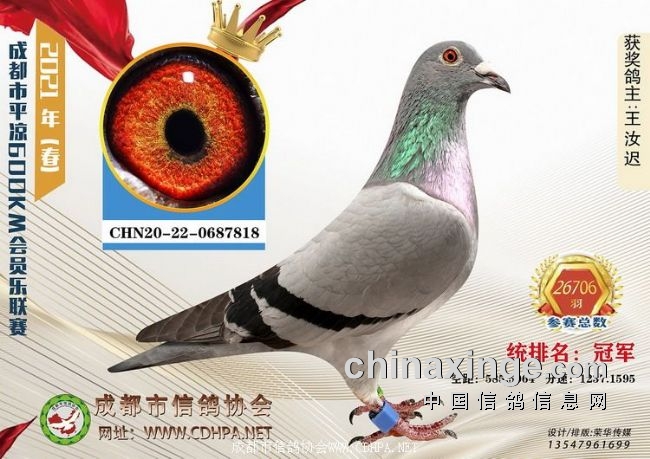 1、北京全市联翔赛是每一年春赛的经典赛事,空距大约550公里。比赛于4月18日6:08在河南新乡开笼,鸽车11辆,9家参赛单位,28325羽赛鸽齐飞。大兴鸽会的80后的鸽友韩雪麾下的一羽赛鸽以1701.291米/分的分速拿下2021年北京市春季全市联翔比赛的冠军。更多>>