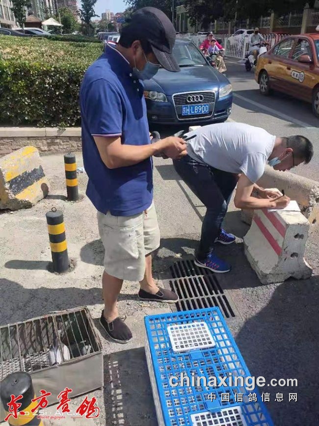 在北京鸽友家接鸽时核对羽色和登记信鸽数据