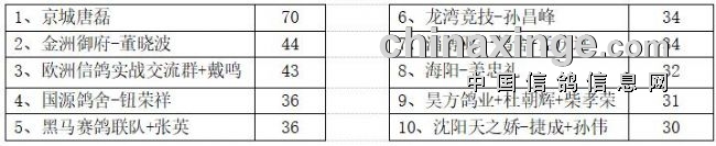 表一:全国各省(直辖市)自治区交鸽排行榜。