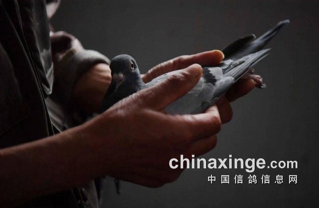 邹立明在给小鸽子摸骨,一个月来,小鸽子的成长速度惊人。