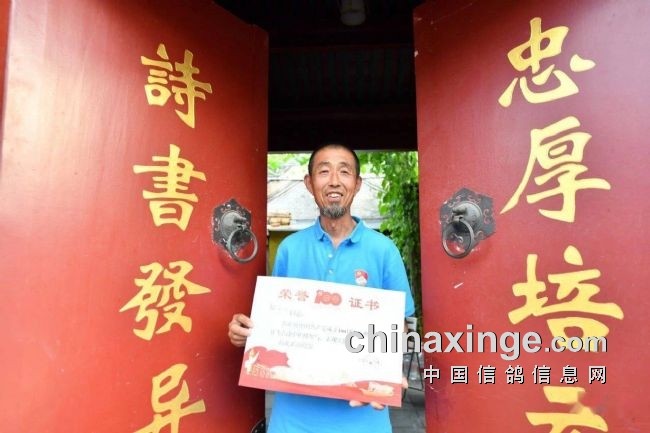 邹立明手捧庆祝中国共产党成立100周年大会和平鸽放飞荣誉证书,兴奋地描述当天鸽子飞回家时的情景。