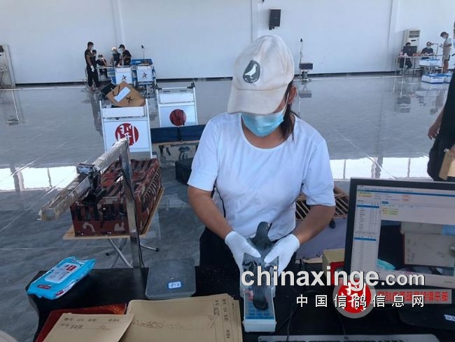 2021年开创者“铁鹰四关”北京东部赛区仟元特比环第二次注册(总检)工作于8月10日和11日进行共用时两天,此次总检工作由北京市信鸽协会会长郝贵平、副会长兼国家级裁判任广智带队对总检工作全流程进行全方位的执裁督导。逐一对每一羽赛鸽严格按照总检所规定的各个环节进行检验,包括环号核对、信息采集与录入、核验幼检滚章、加盖膀章、照相留档等。每个验鸽台全程实时监控并高清录像。