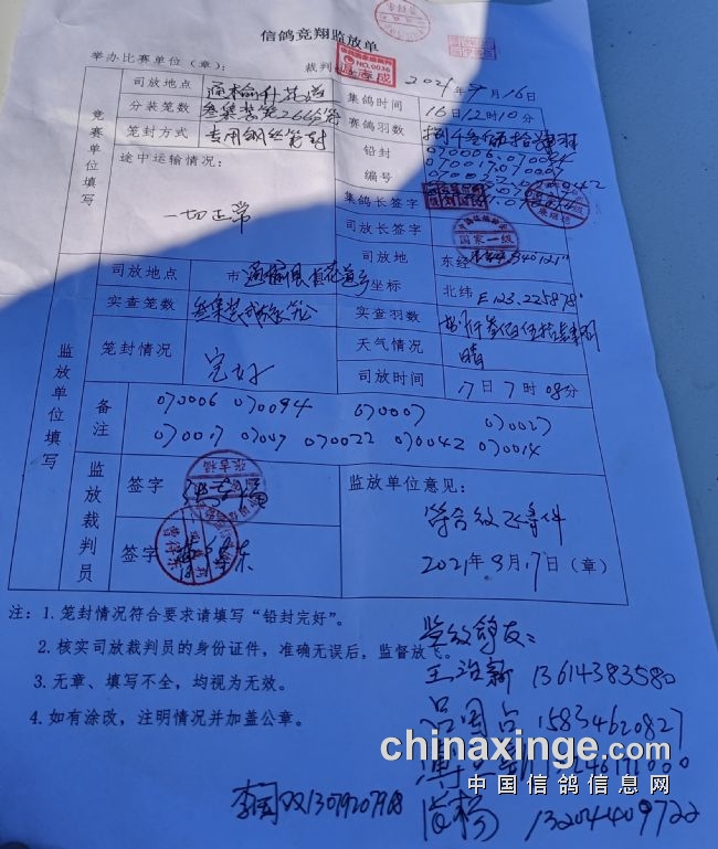 在放飞现场有10多位裁判员及监赛鸽友进行监督。