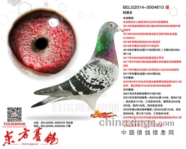 ——开尔欧洲鸽舍5羽阿曼多子孙在二万多羽KBDB鸽王赛中突出重围