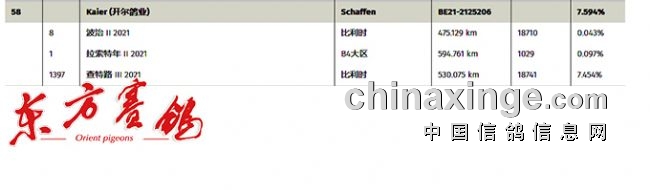 2021年查特鲁Ⅲ全国18741羽530公里223位;