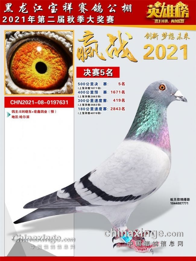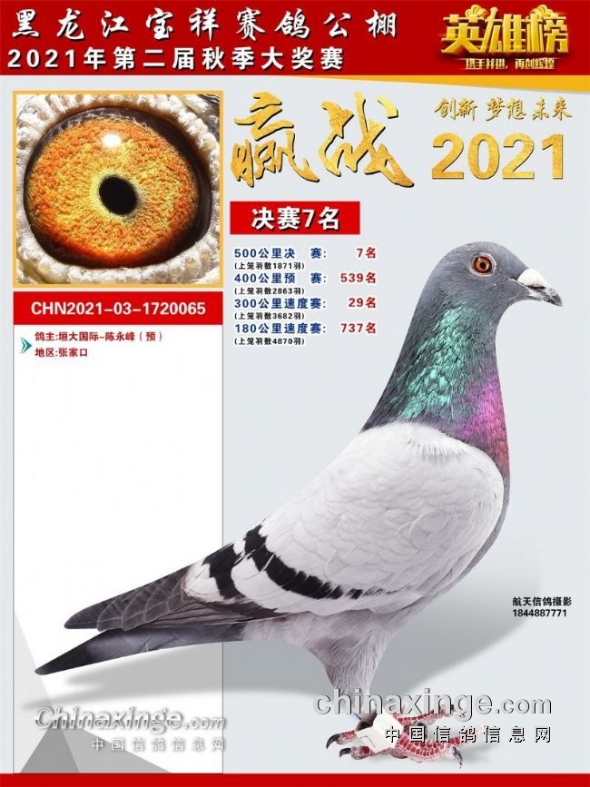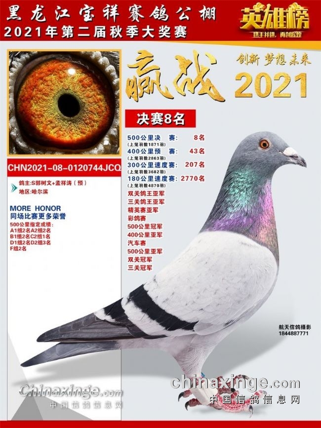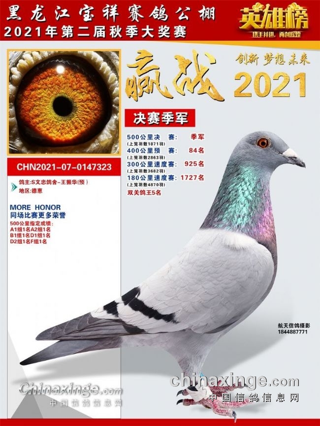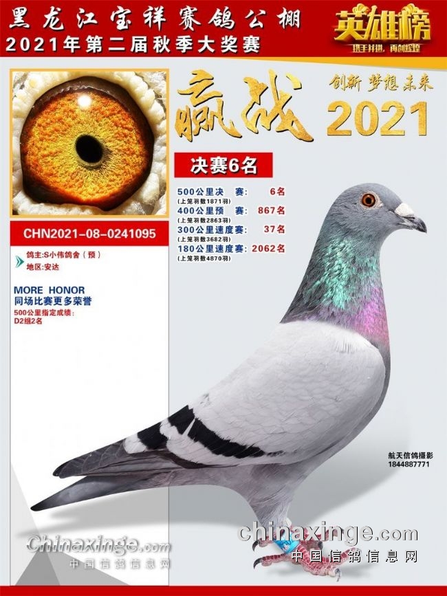 黑龙江宝祥公棚2021秋季决赛获奖鸽301-400名