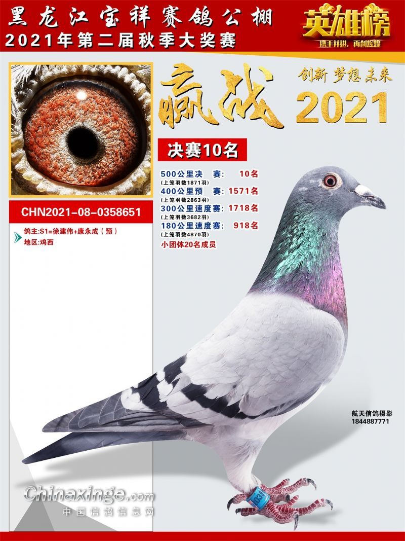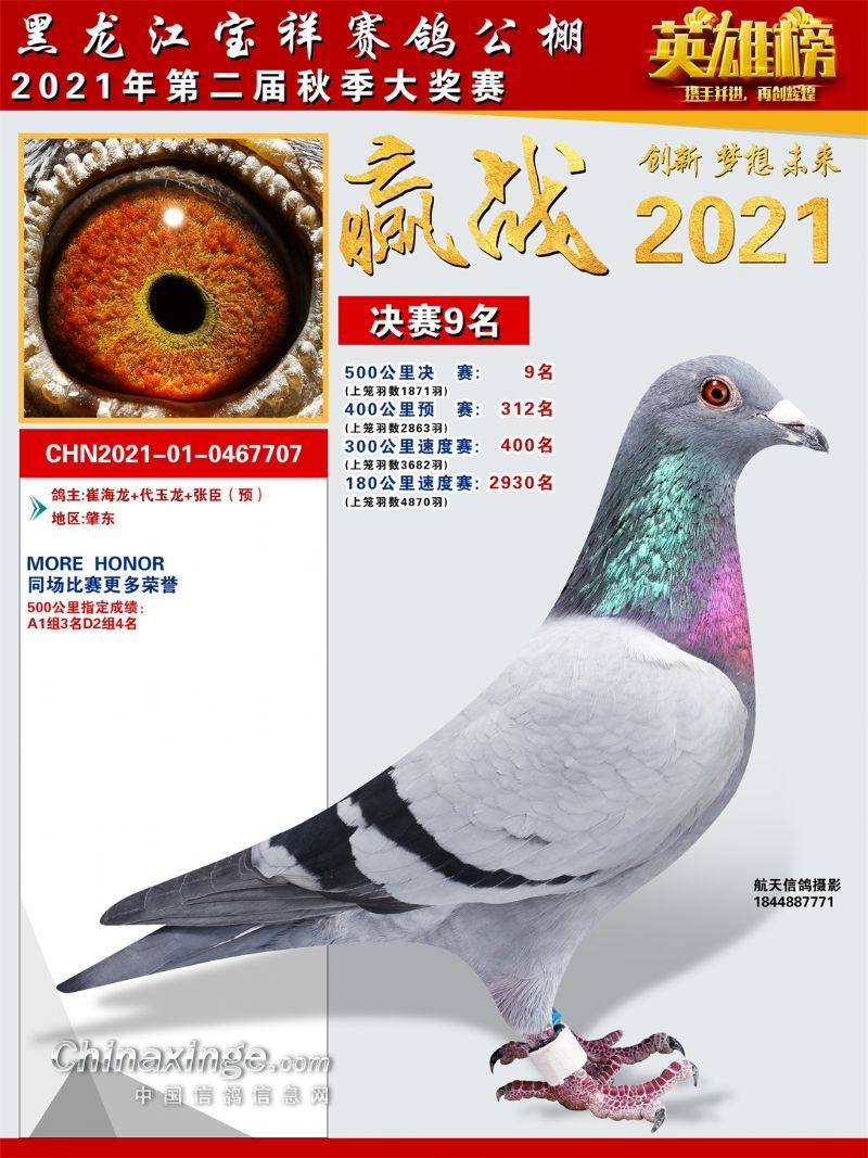 黑龙江宝祥公棚2021秋季决赛获奖鸽401-500名