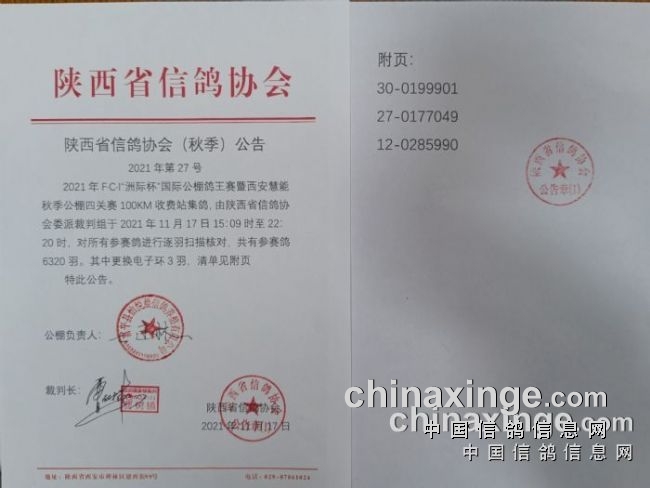 昨天(11月17日),西安慧能秋棚迎来赛前最远距离100公里资格赛的最兴奋时刻。在陕西省信鸽协会的监赛下,在鸽友代表和信鸽媒体的监督下,裁判员逐羽检查参赛鸽足环,核对电子环信息,检查鸽子状况,盖暗章等。从下午15:09分开始至22:20分结束,总计集鸽6320羽。