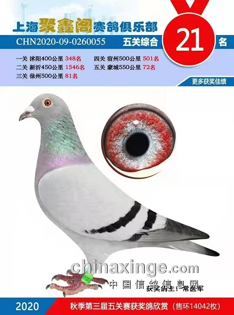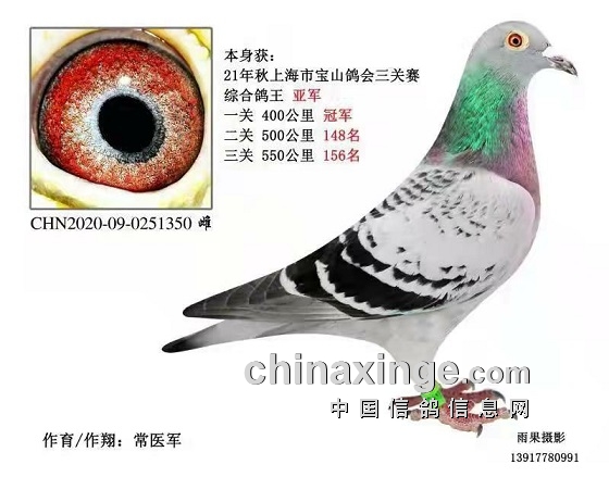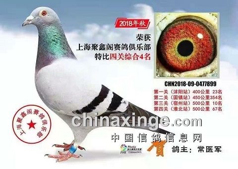 2021年,牛转乾坤。上海市宝山鸽协组织全市的三关鸽王赛,第一关(凤阳400公里)常医军荣获单关冠军、第二关(宿州500公里)常医军荣获单关3、4、5名,第三关(淮北550公里)常医军荣获三关鸽王总冠军(2021-09-0171264),特比环三关鸽王总冠军、三关鸽王总亚军(2020-09-0251350),还有第25名、第49名、第74名等高位名次。