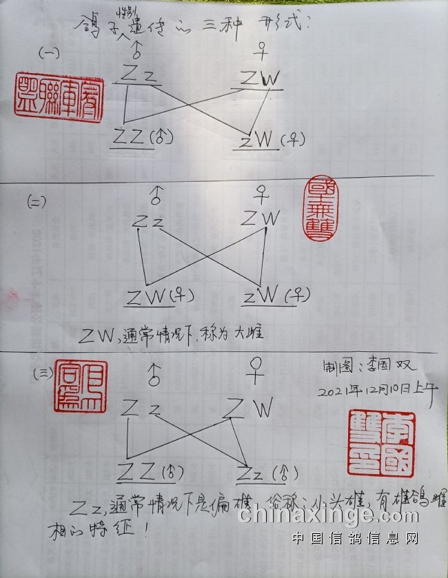 另外一个情况是:雌鸽排出的2个性染色体都是W和雄鸽的任何一个性染色体(Z或z)结合后代就是两个雌鸽,ZW和zW,ZW通常情况下称为大雌。