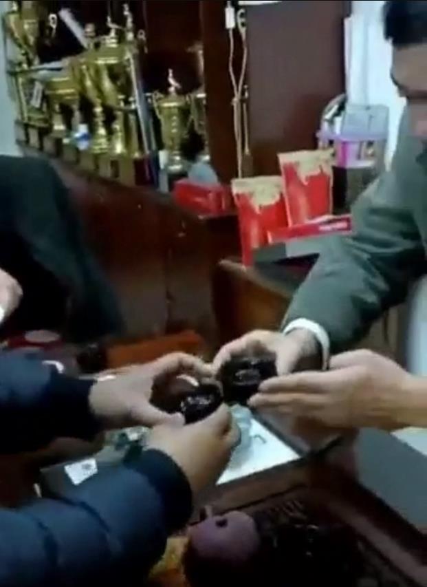 这位师傅应该是上海某名家,从其背后满墙的奖杯来看,大概是一位颇有实力的赛鸽高手。想要跟着高手学艺,本是人之常情,只是,需要做到这个地步吗?换个角度思考,端坐在高堂上的这位师傅,能心安理得地收下这份“大礼”吗?