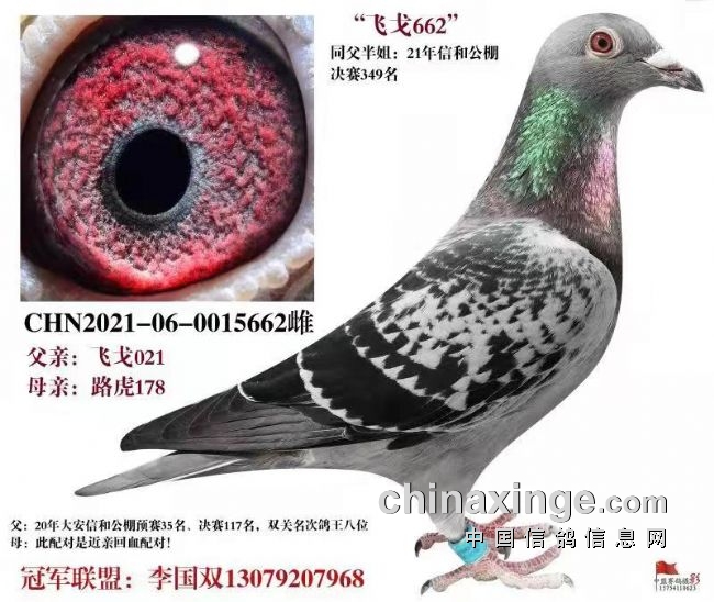飞戈021是2020年生的鸽子,2021年秋季直女获得:公棚决赛349名,现在看来去年做的回血还是有意义,起码知道飞戈021是直线遗传。