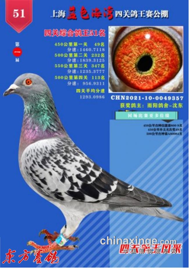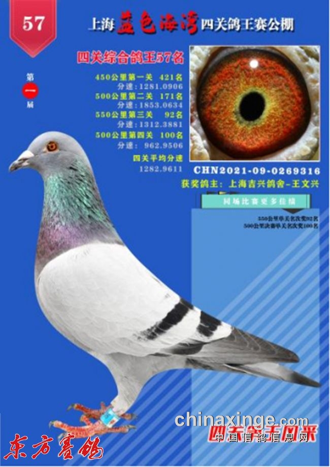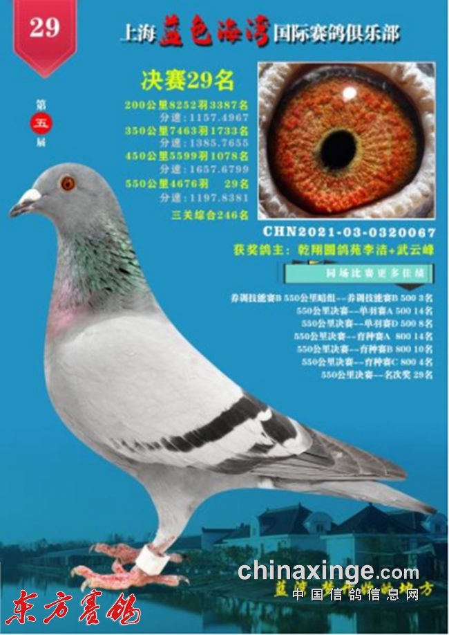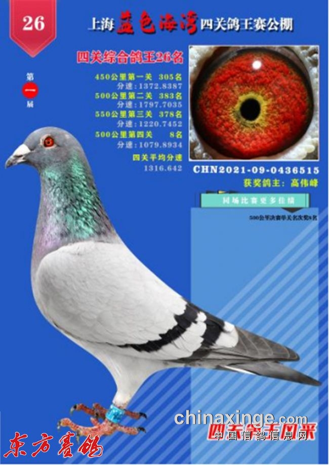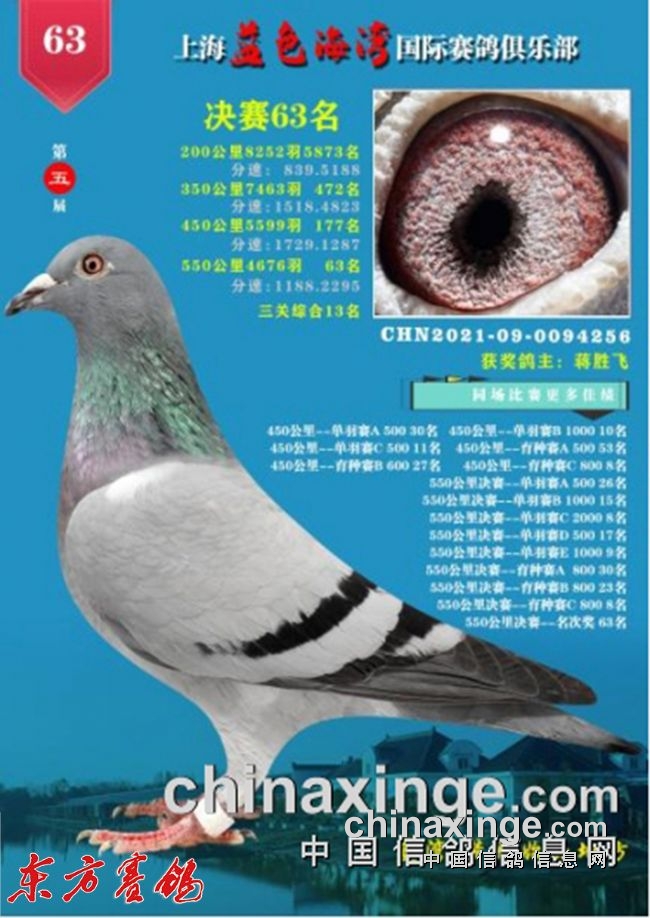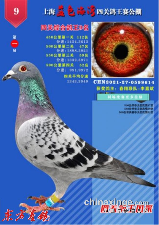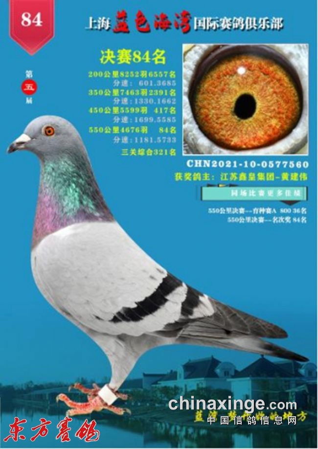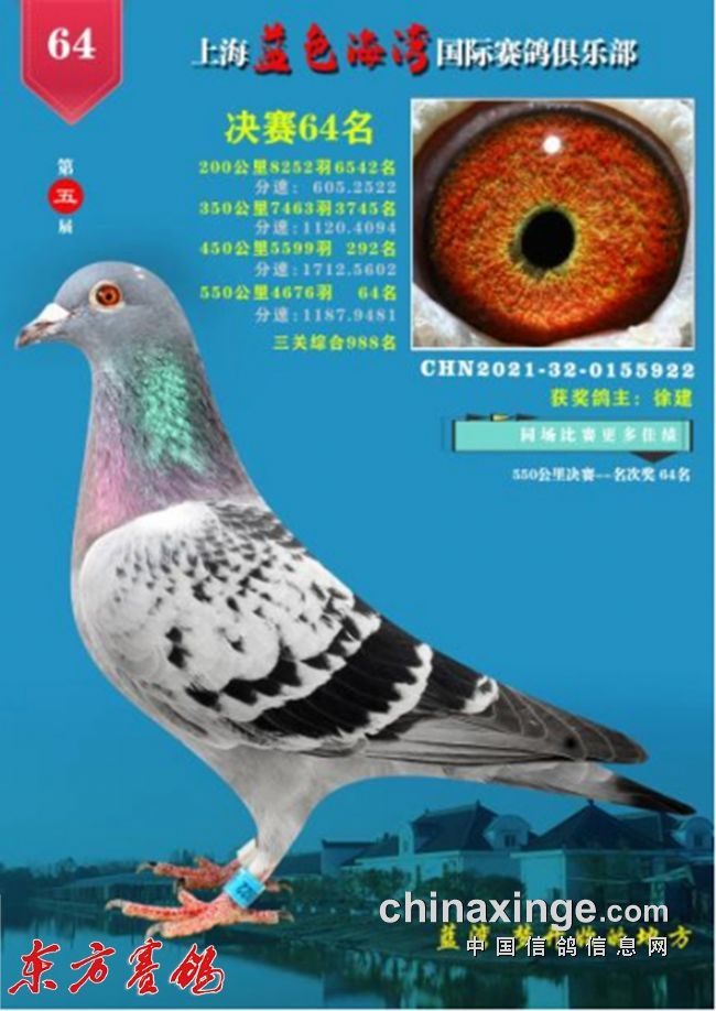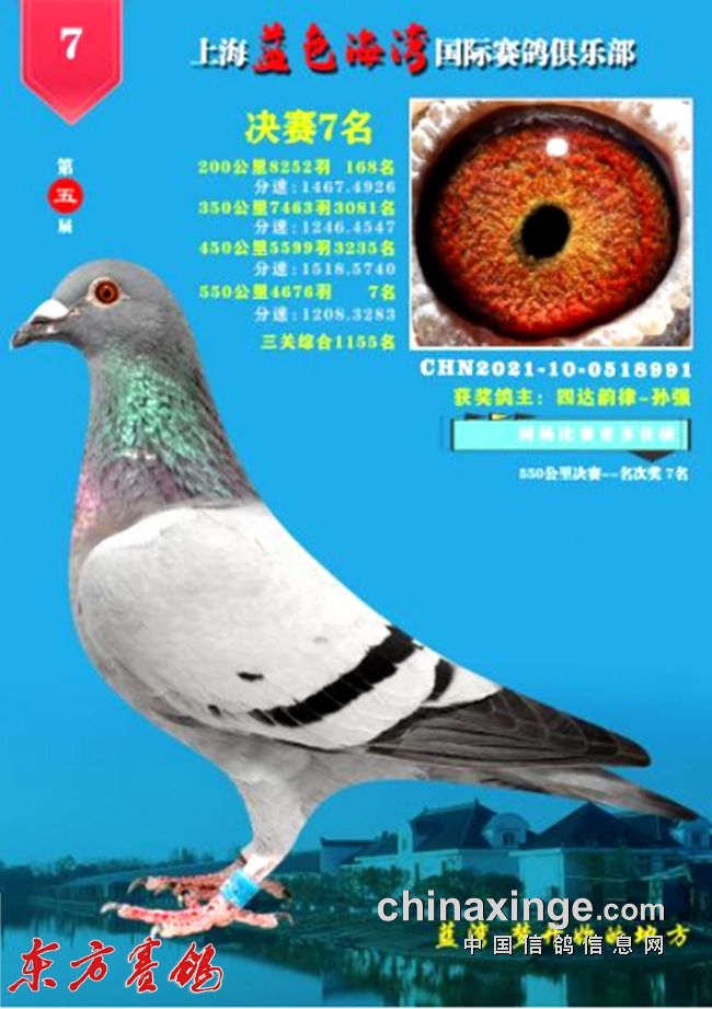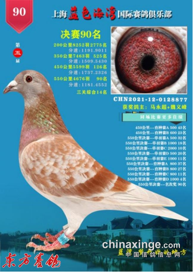 蓝色海湾赛鸽俱乐部(简称单关棚)2022年第六届竞赛决赛增奖20名,幼鸽前3位颁发奖杯,前20位每羽嘉奖3000元。