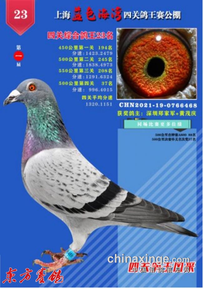 蓝色海湾四关鸽王赛公棚(简称四关棚)2022年第二届四关鸽王大奖赛鸽王赛增奖20名,幼鸽鸽王前3位颁发奖杯,前20名幼鸽鸽王每羽嘉奖4600元。