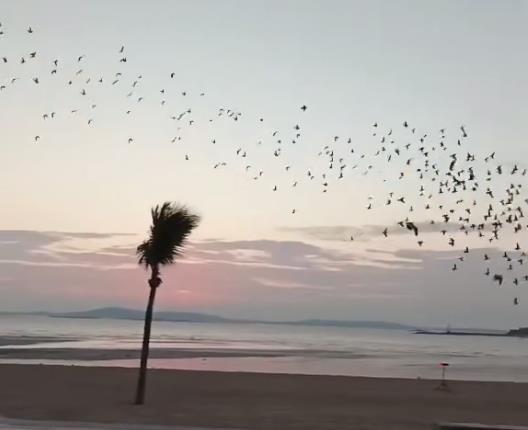 朝霞的红晕,洇在远处泛白的天空上,像少女明媚的脸颊。海天一色,在这醉人的美景下,对于远行的赛鸽们来说,却隐藏着无言的危机,希望小将们能安全回家!点击查看直播链接>>