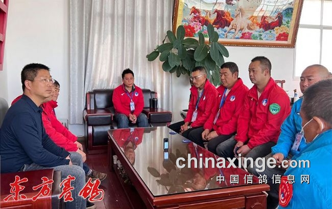 石林宇松赛鸽中心董事长韩雨松(左)和裁判员在工作会议上