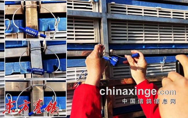 铅封完毕,裁判员逐一核对鸽车的铅封编号