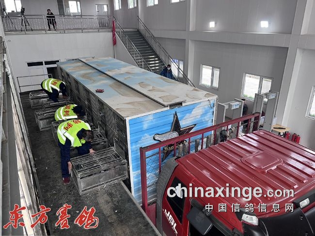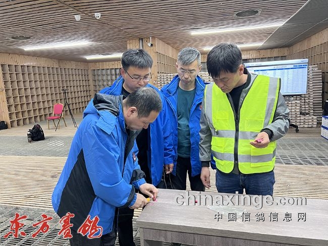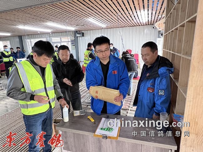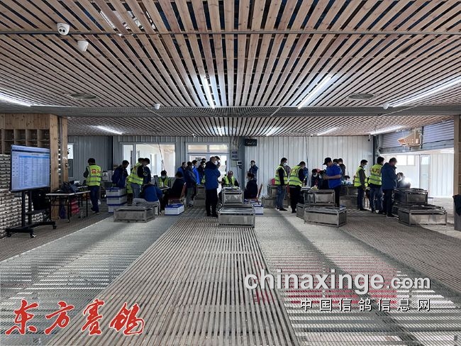集鸽结束后裁判员对公棚进行检查防止鸽子漏赛。