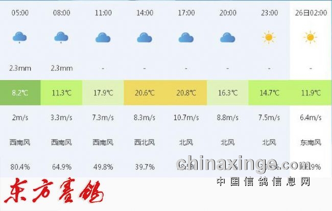 今天比赛的气象条件,中央气象台预报赛线的区域内县市与公棚所在地的静海区为无持续风向。但上午赛线还是以顺风与侧顺风的西南风为主,风力在2-3级,有利于赛鸽的飞行。午后静海区的风向转为侧逆风西北风,风力等级也随之升高为4级左右,对赛鸽回归有些影响。但与热身赛时的逆风与侧逆风相比,今天赛线的气象条件已是相当好了,有望取得较好的赛绩。