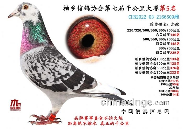 22年春赛:宁晋城西赛鸽俱乐部千公里冠军、季军、8名、9名、10名;硬一关双关鸽王季军、45名、80名;硬三关鸽王8名、48名、112名;六关鸽王冠军、五关3名、四关3名、三关5名;120公里10名、11名、23名、24名、28名、30名;150公里殿军、6名、9名、14名、16名、17名、19名、20名、21名;180公里11名、14名、61名、63名;500公里7名、16名、21名、43名、49名、51名、55名、57名、58名、75名、77名、83名、85名、88名;520公里亚军、殿军、5名、7名、16名、21名、23名、28名、58名、60名、81名、89名;550公里冠军、9名、11名、15名、16名、19名、20名、21名、58名、61名、62名、63名、72名、76名、81名、83名、85名。