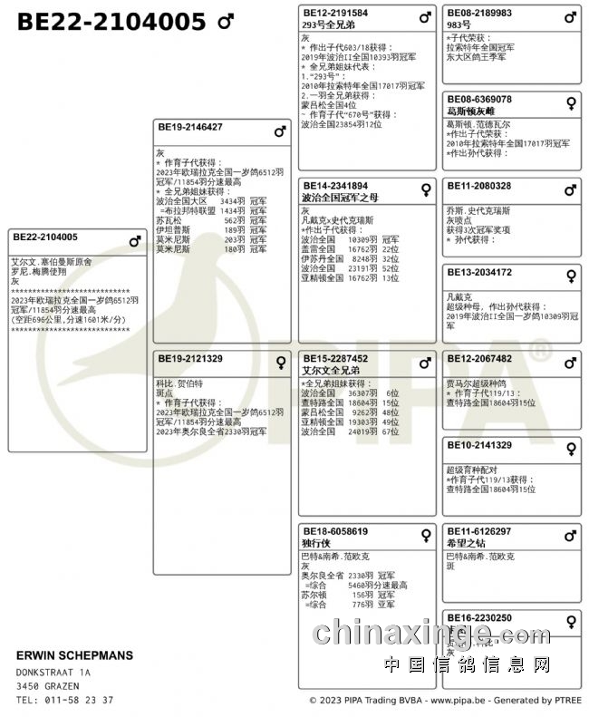 一岁鸽全国冠军、11854羽总冠军