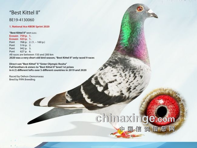 *2020年KBDB全国速度鸽王冠军“最佳基特尔II世”BE19-4130060 坏小子曾孙代