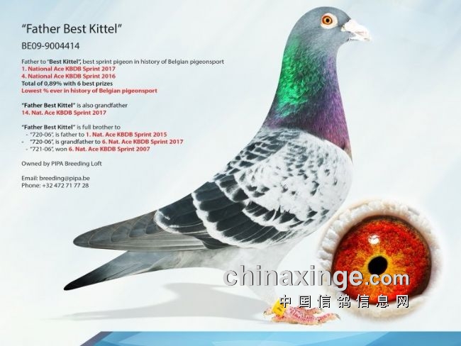 *BE06-9009720最佳基特尔父亲兄弟 作育“2015年全国速度鸽王冠军”坏小子子代