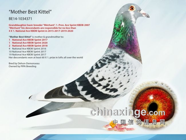 摘自PIPA网“2022年比利时备受关注的速度赛场已经连续第6年被一支鸽系统治,这对夫妻组合更是一举包揽了2022年KBDB全国速度赛一岁鸽王冠军、亚军和季军,这是此前从来没有过的壮举!这意味着,他们连续4年获得KBDB全国鸽王冠军,过去8个赛季不少于6次夺冠,我们都知道在速度赛达到顶级水平的难度,能够保持在顶级水平已经是了不起的成就,何况还能狂揽如此众多的记录并不断超越,这在此前绝对是绝无仅有的!我们重申要取得如此众多的全国鸽王,只可能是拥有最高品质的鸽系的结果。对于这对夫妇来说,一切始于“最佳基特尔”家族“最佳基特尔”被发现后,PIPA竞速育种中心决定珍藏并改进这支神奇鸽系,他们在全世界多家公棚赛的众多距离比赛中取得辉煌成绩,甚至包括最长距离的比赛,这些战将拥有超凡的运动素质,它们超强力量源自它们钢铁的意志和快速归巢的决心。”
