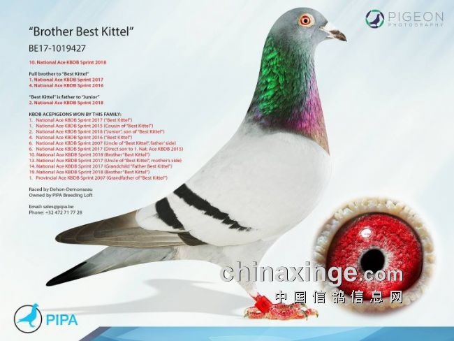 最佳基特尔王朝风靡世界的KBDB速度鸽王家族,2017年KBDB全国速度鸽王冠军“最佳基特尔”是最近几年备受热议的赛鸽之一,然而它的故事在2017年前已经开始。