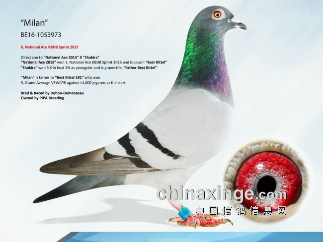 *BE16-1053973米兰2017年 KBDB全国速度鸽王7位 坏小子四代