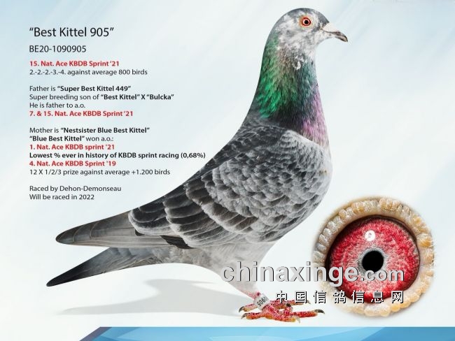 *BE20-1090905最佳基特尔905 2021年KBDB全国速度鸽王15位 坏小子四代