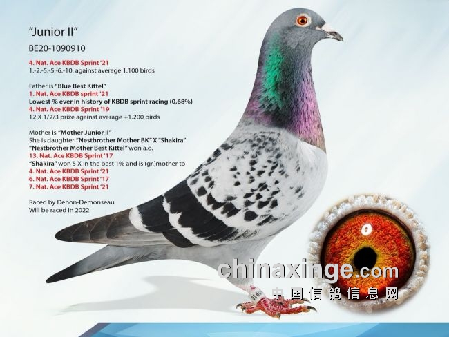 2019年KBDB全国速度鸽王4位,作出青葱少年II世2021年KBDB全国速度鸽王4位
