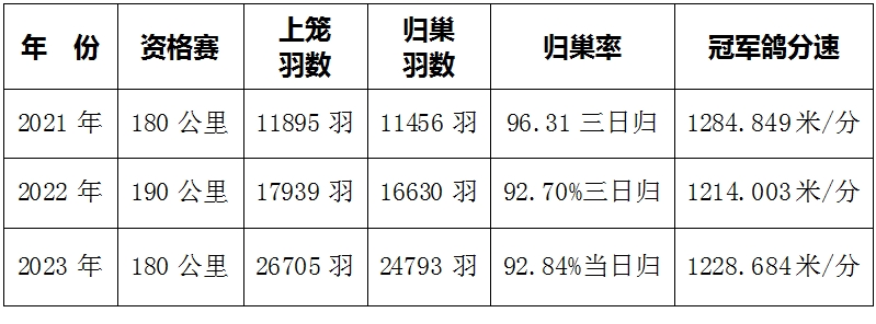 开尔赛鸽青年队近三年资格赛数据对比