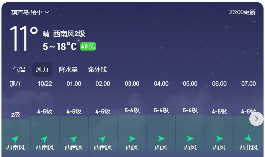 绥中县22日7点前风向情况