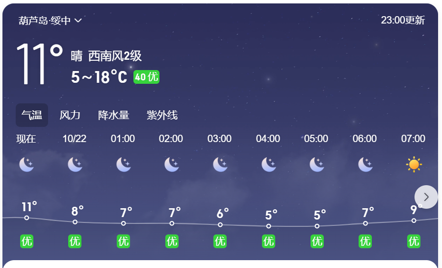 绥中县22日7点前天气情况